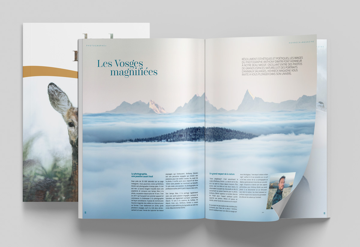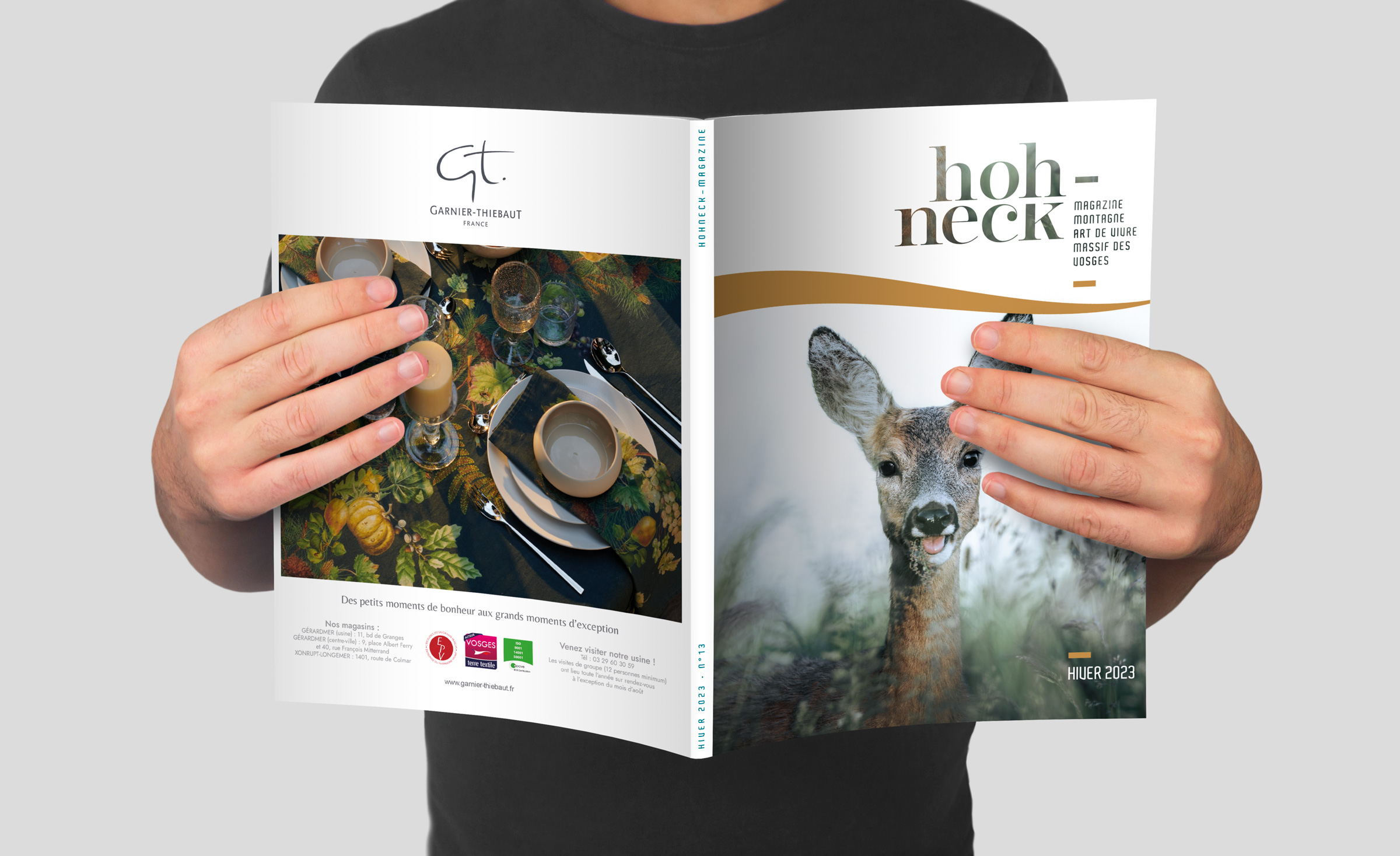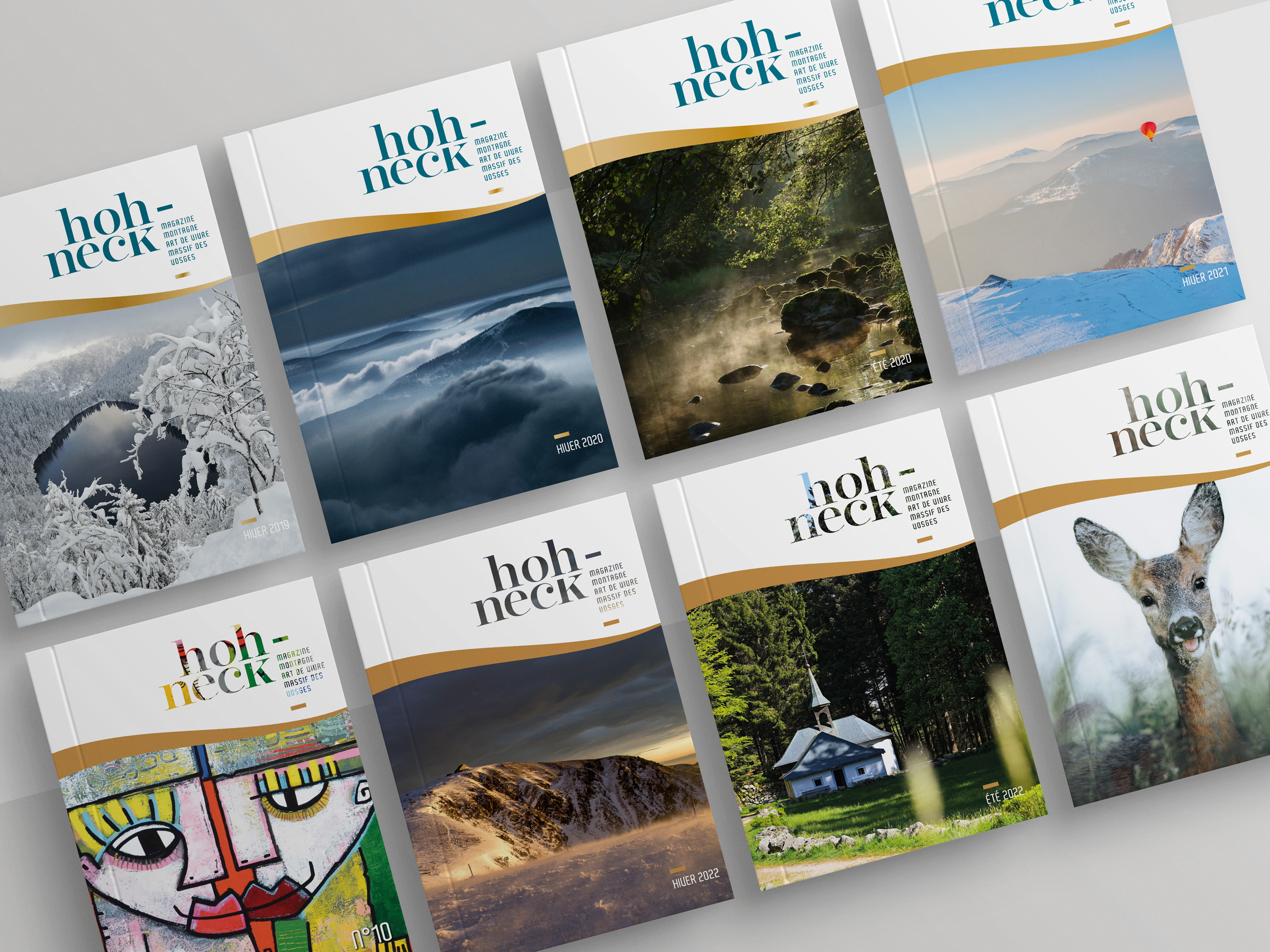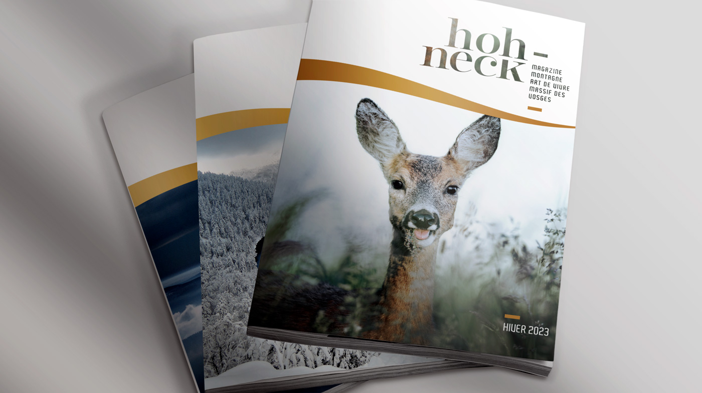 Hohneck est bien plus qu’un magazine, c’est une vitrine pour le massif vosgien. Il regroupe tous les savoir-faire de notre territoire : métiers de bouche, artisanat, travail du bois, sports, linge de maison, culture, nature, patrimoine… L’excellence en 124 pages. Imprimé sur un papier de haute qualité, avec des encres respectueuses de l’environnement, Hohneck inscrit son prestige de A à Z et de H à K. Chaque parution, en juin et décembre, marque le début des saisons touristiques et montre les Vosges sous leurs différents visages. Des forêts vertes aux lacs gelés en passant par les chemins de randonnées et les pistes enneigées. C’est ça les Hautes-Vosges : la vie au grand air. Mais pas que ! Le massif vosgien regorge de talents. Du gosier et du palais, des sensations et des frissons, des légendes et de l’histoire, du patrimoine et des paysages à couper le souffle… C’est ça les Vosges, c’est ça Hohneck Magazine.